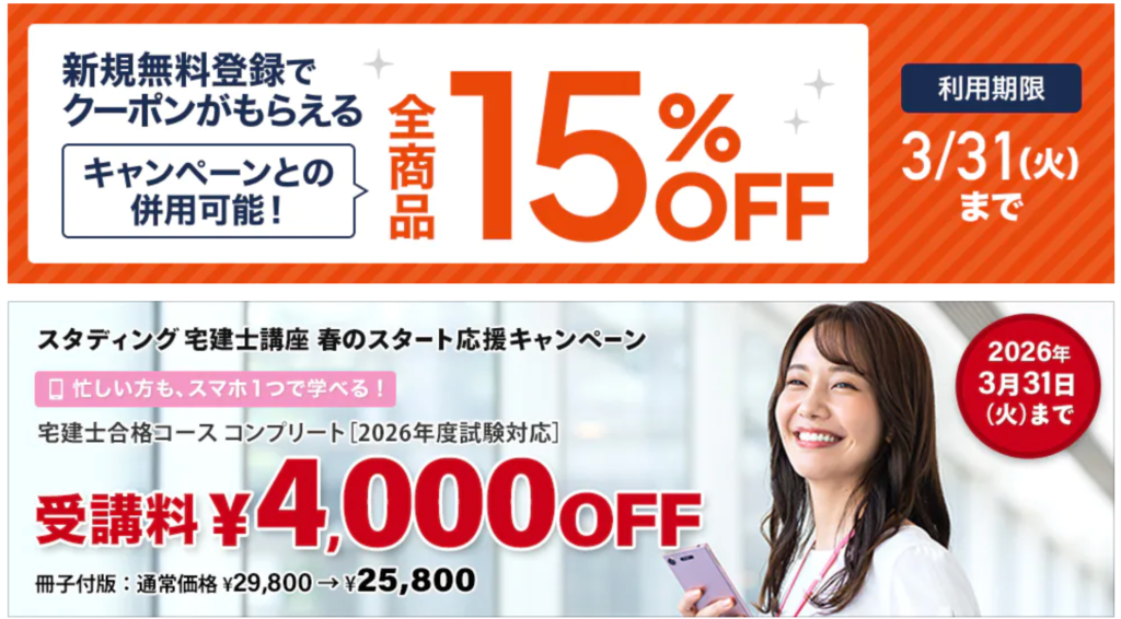 通信講座の費用面に関しては、スタディングの右に出る者はいないといえますね。