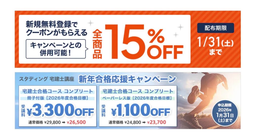 【2026年2月】スタディング宅建講座割引情報 最大限安く購入する方法やクーポン・キャンペーンを紹介